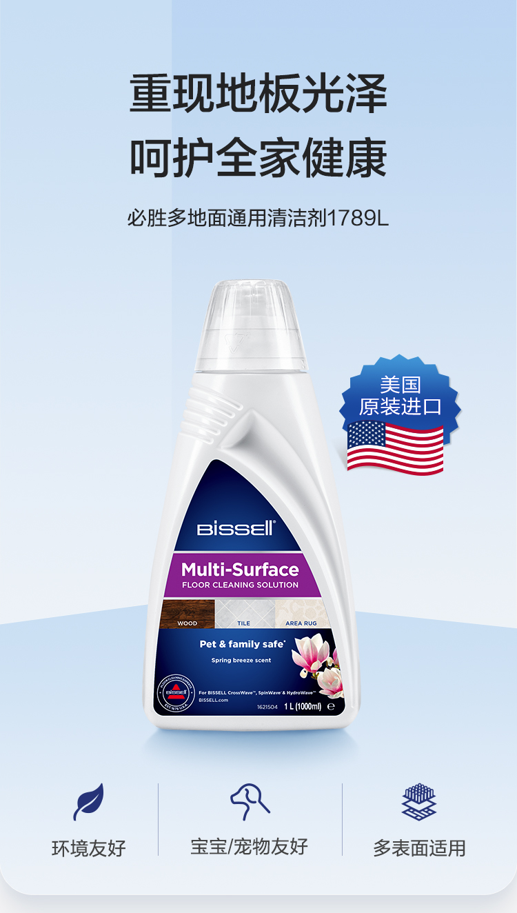 【配件】BISSELL必勝洗地機專用進口清潔液1L裝