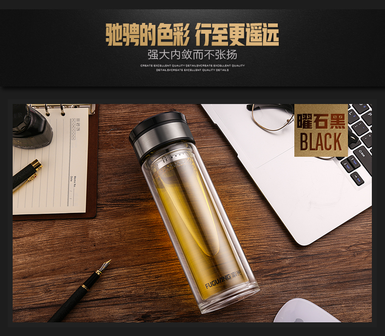 富光雙層抗菌玻璃杯男士商務茶水分離泡茶杯過濾車載禮盒水杯定制