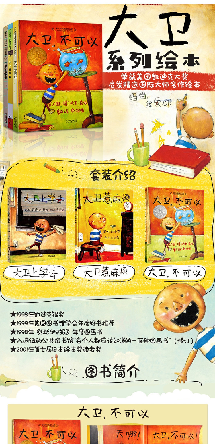 大衛不可以全套3冊硬皮硬殼你繪本