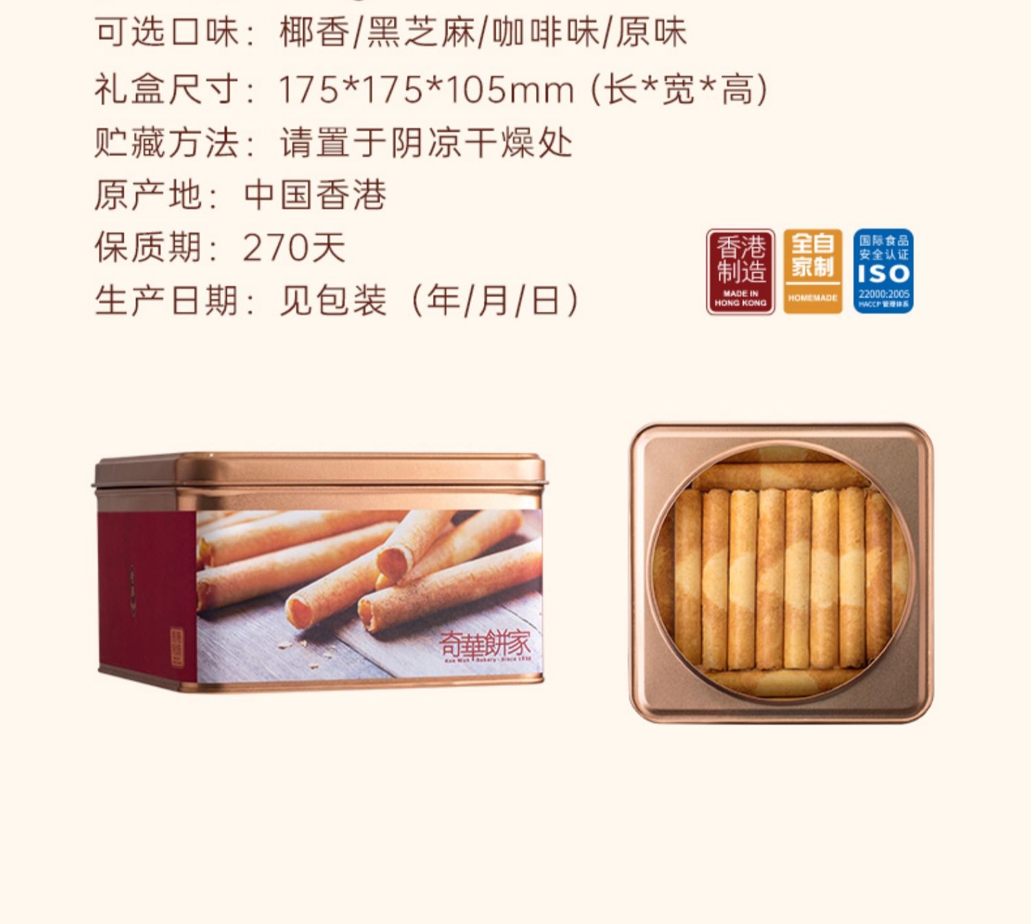 中國香港[奇華餅家]香脆雞蛋卷禮盒餅干蛋卷零食糕點送禮特產小吃