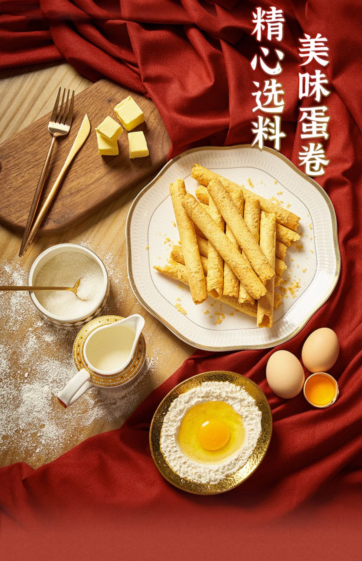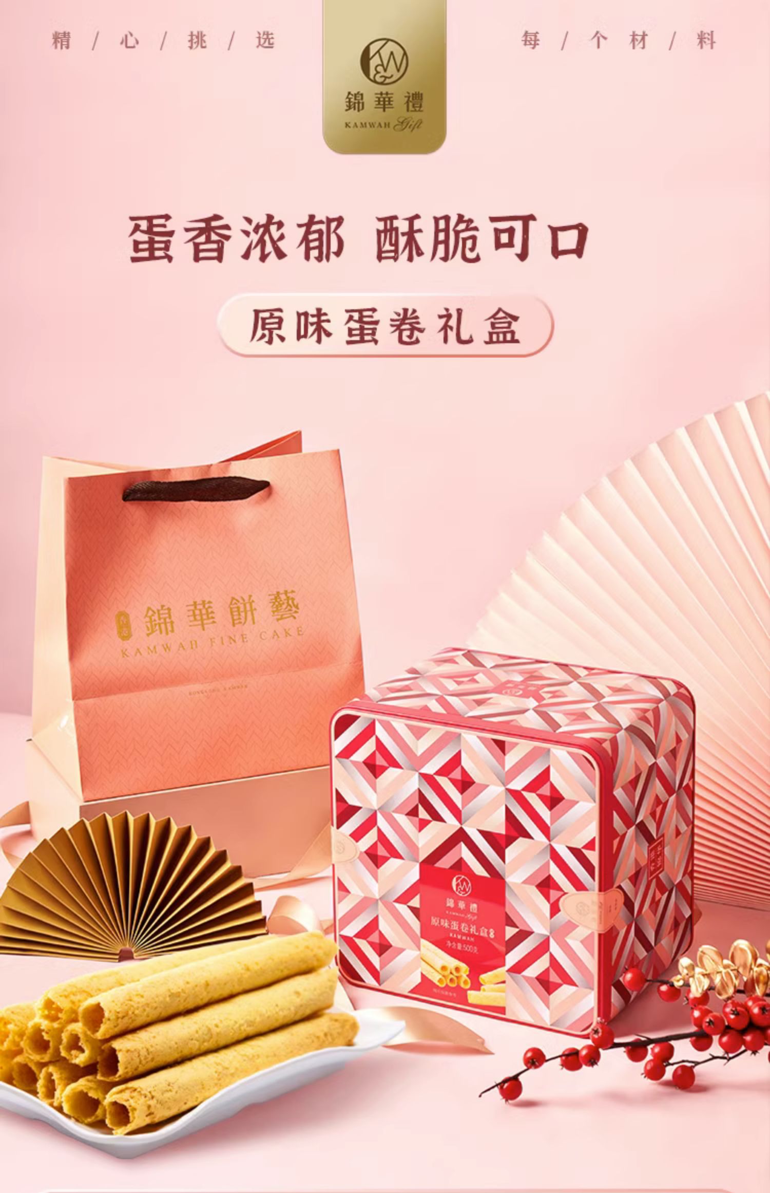 錦華原味雞蛋卷禮盒裝手工蛋黃卷酥餅干糕點心零食休閑伴手禮500g