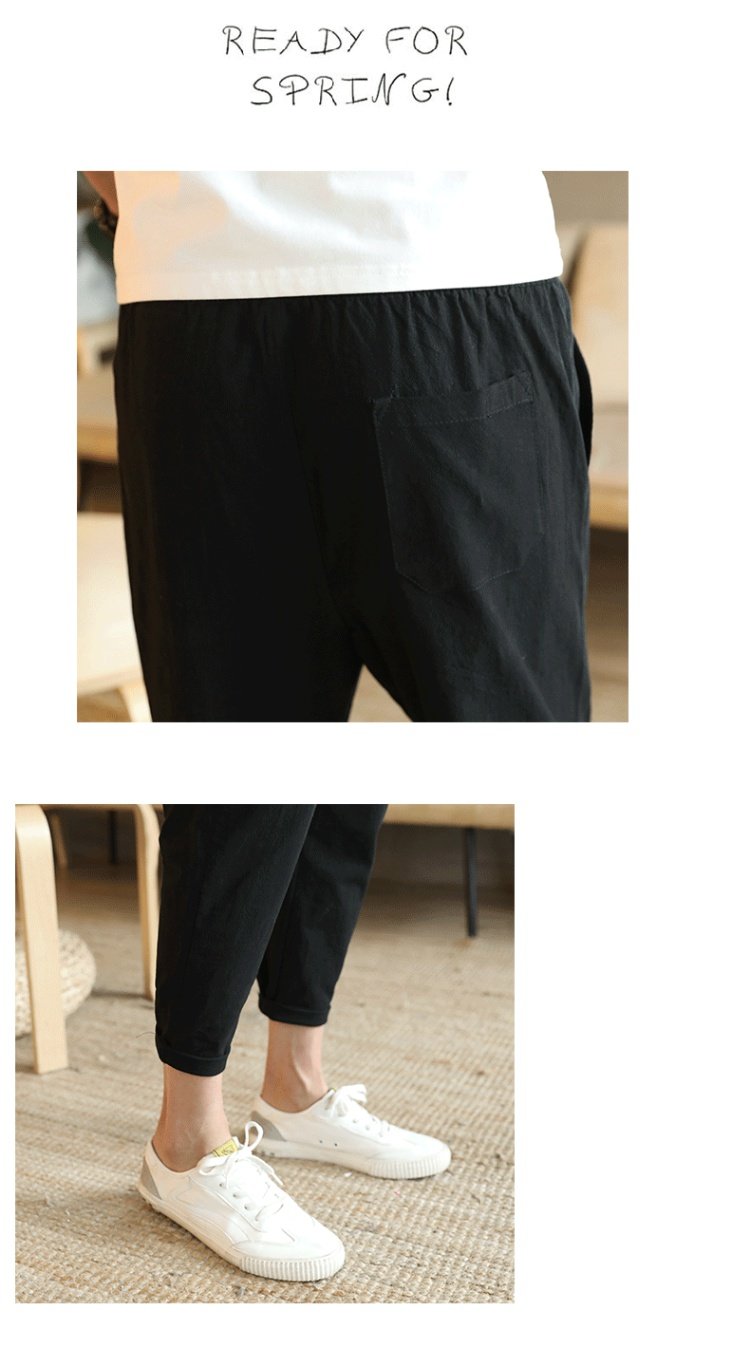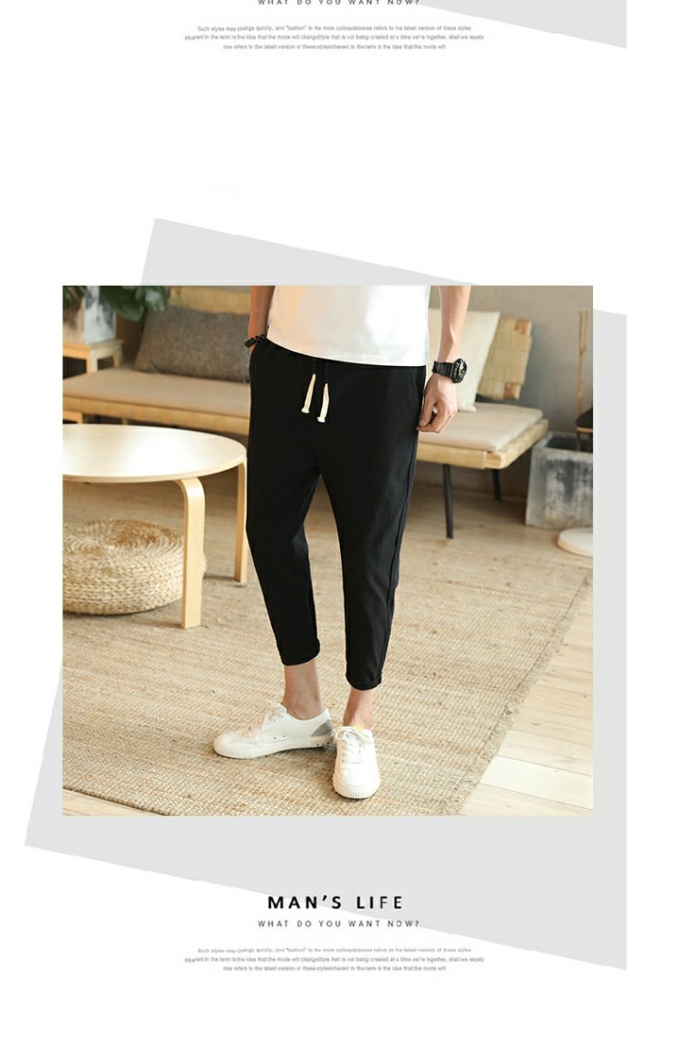 夏季褲子男韓版潮流九分褲男士修身休閑褲棉麻小腳褲百搭9分褲子K