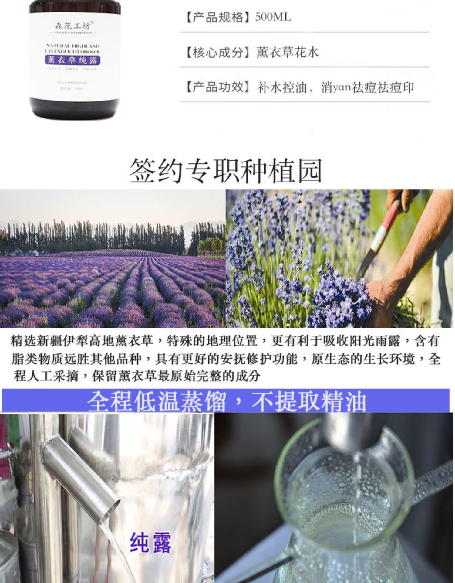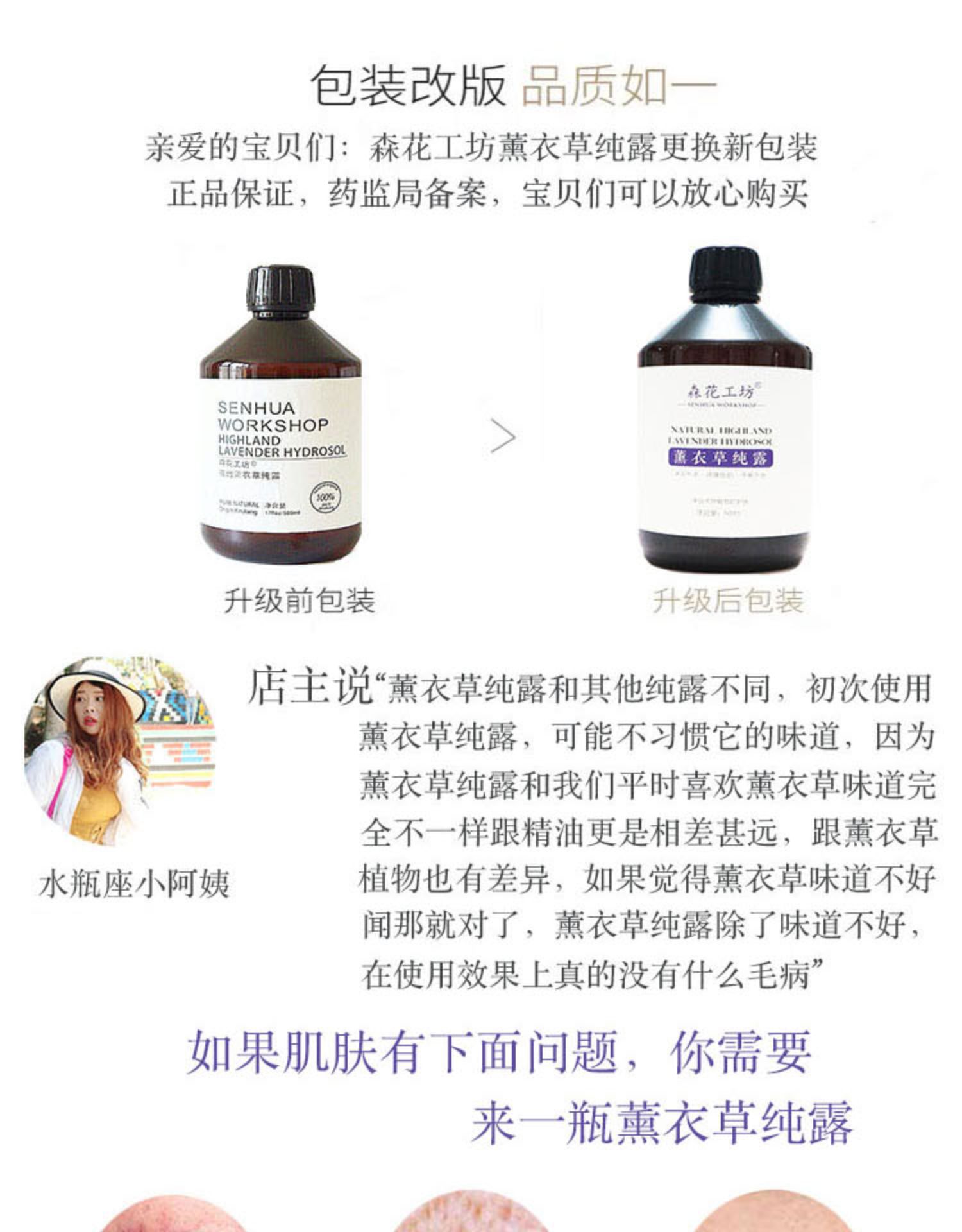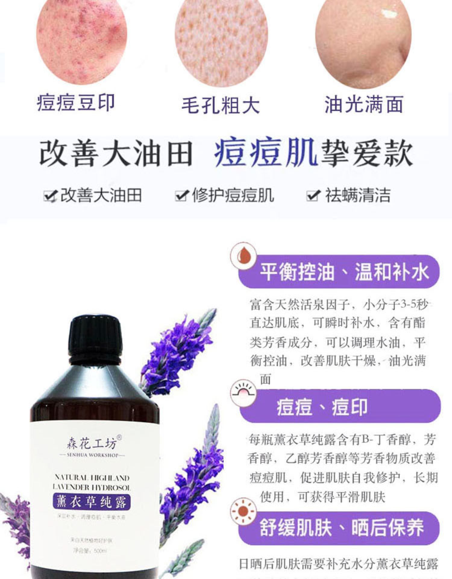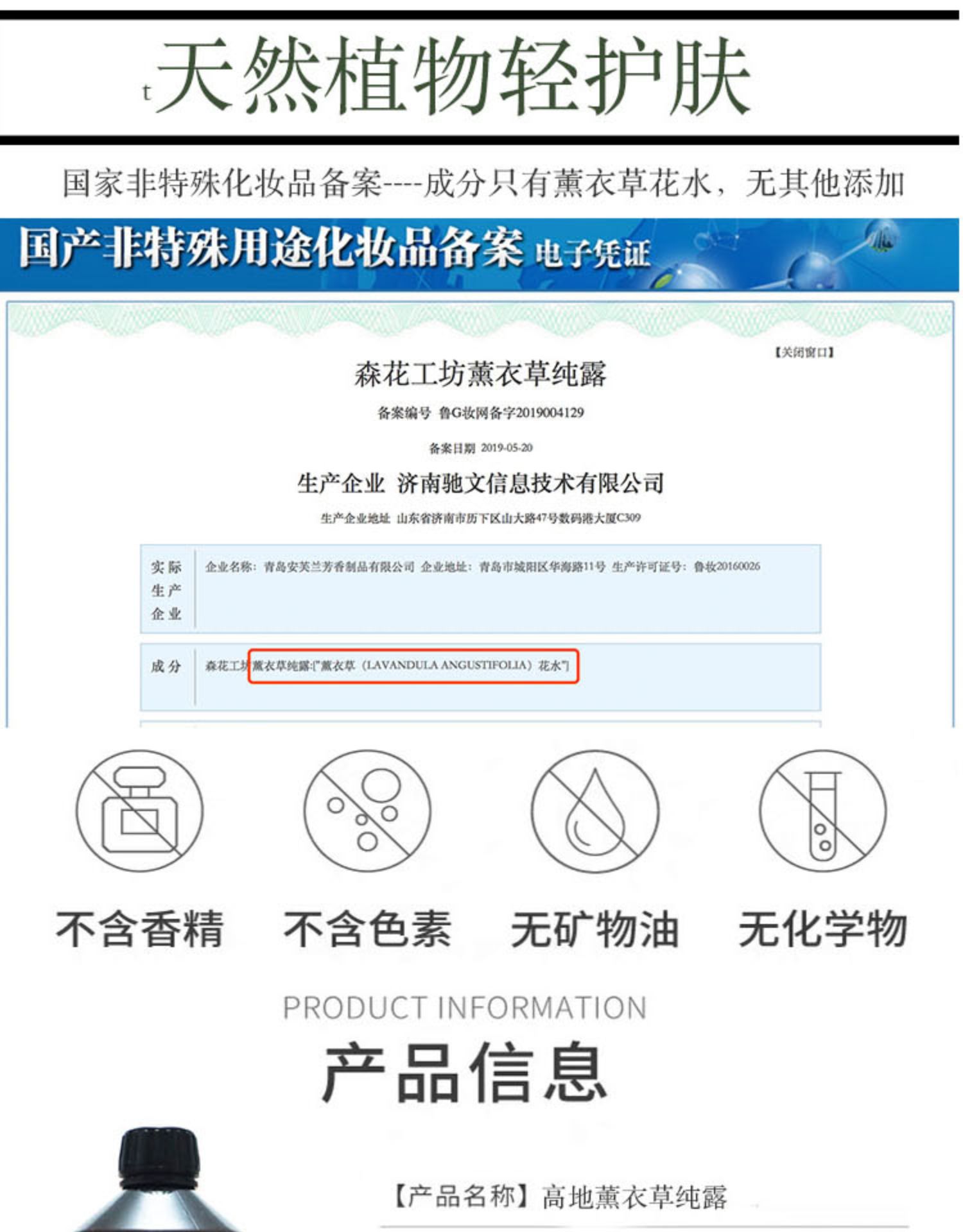 高地薰衣草純露天然補水控油爽膚水淡化痘印花水曬后修復噴霧