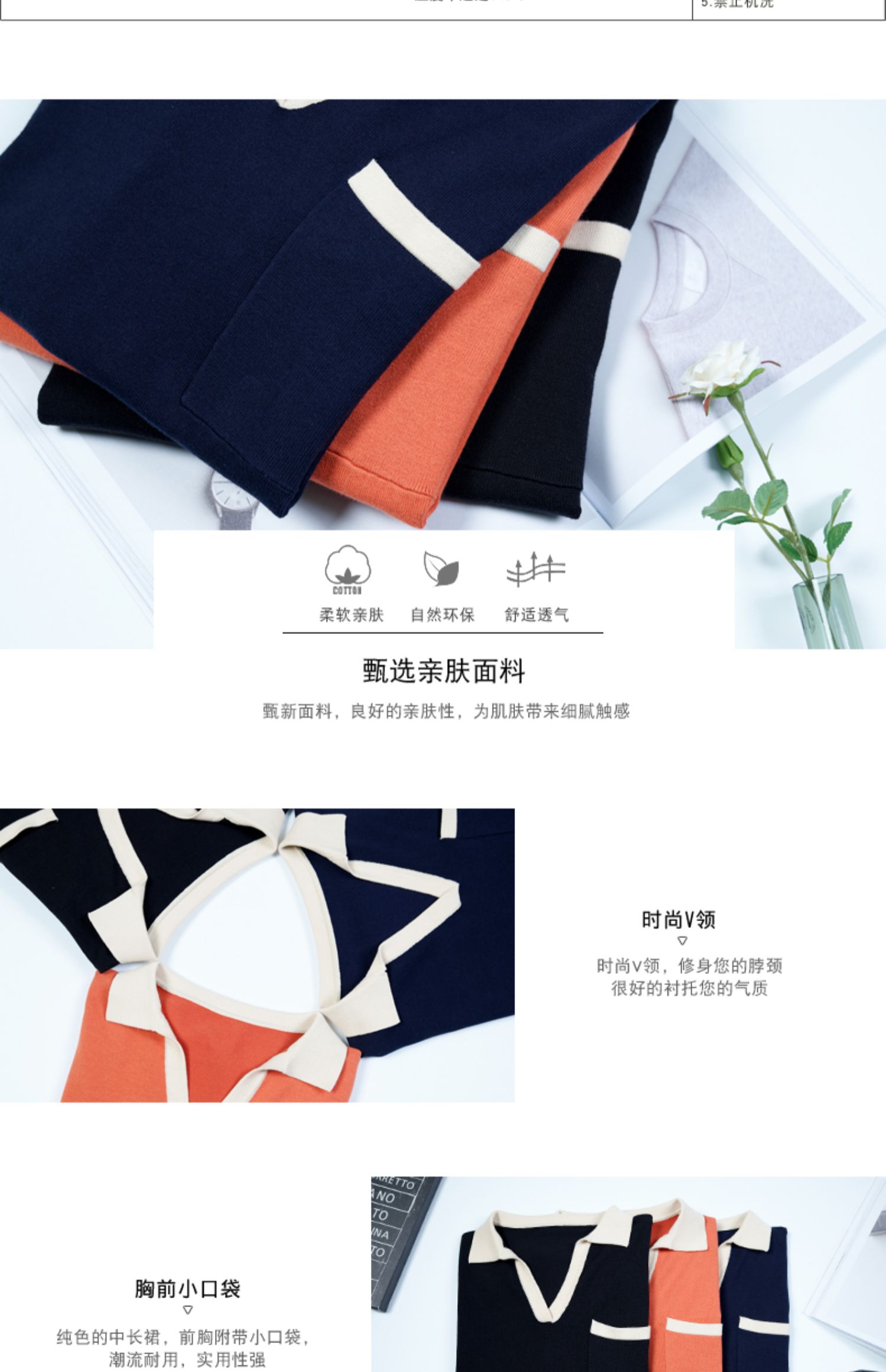ELOF早秋新款polo領連衣裙女運動風長袖撞色休閑收腰顯瘦體恤裙子