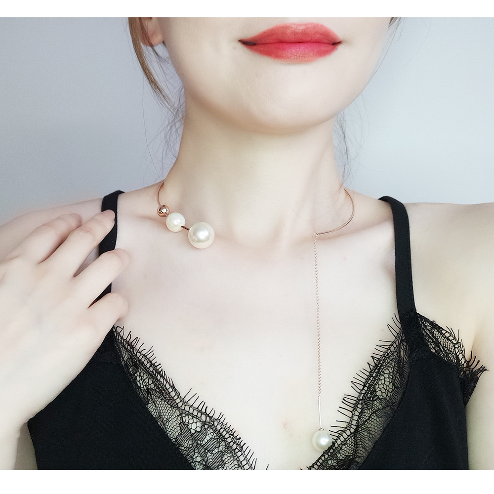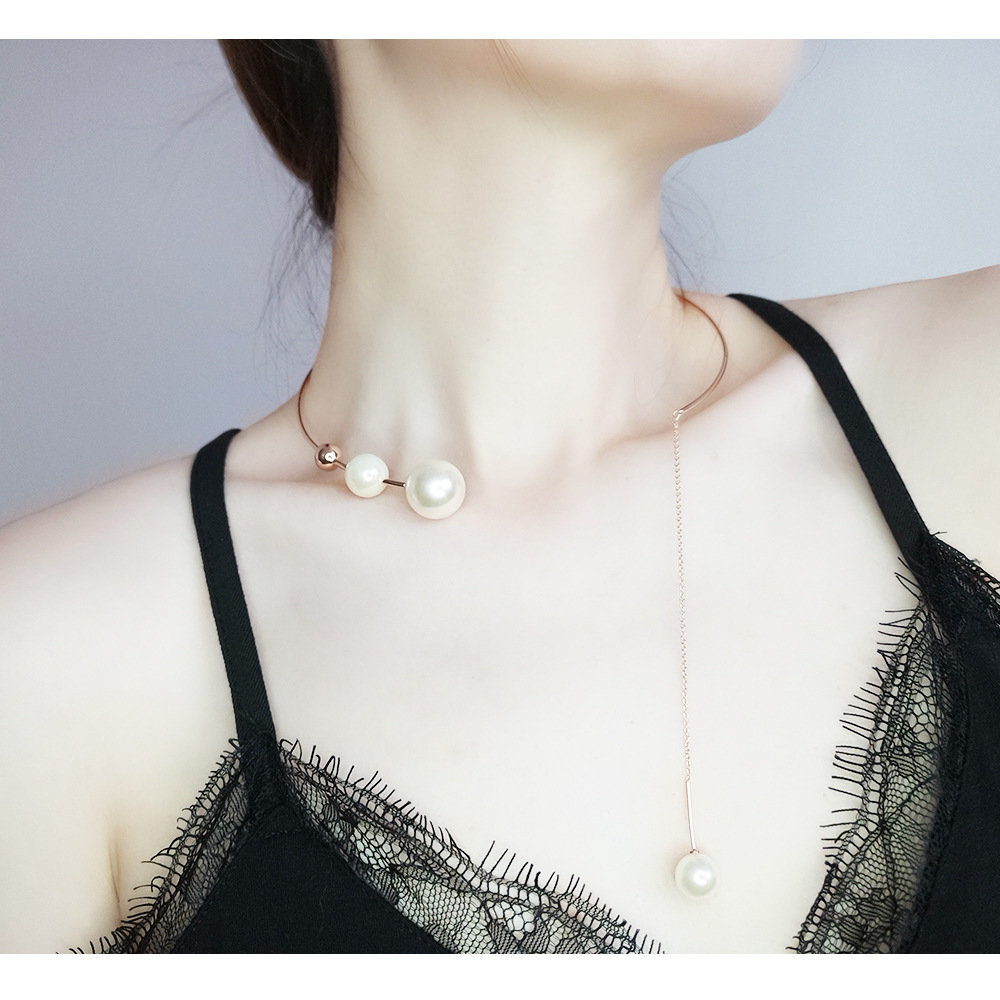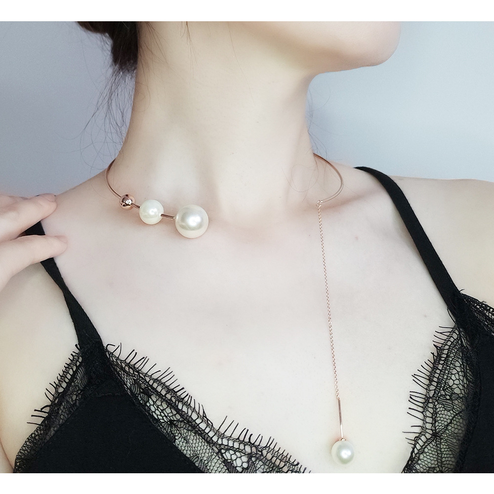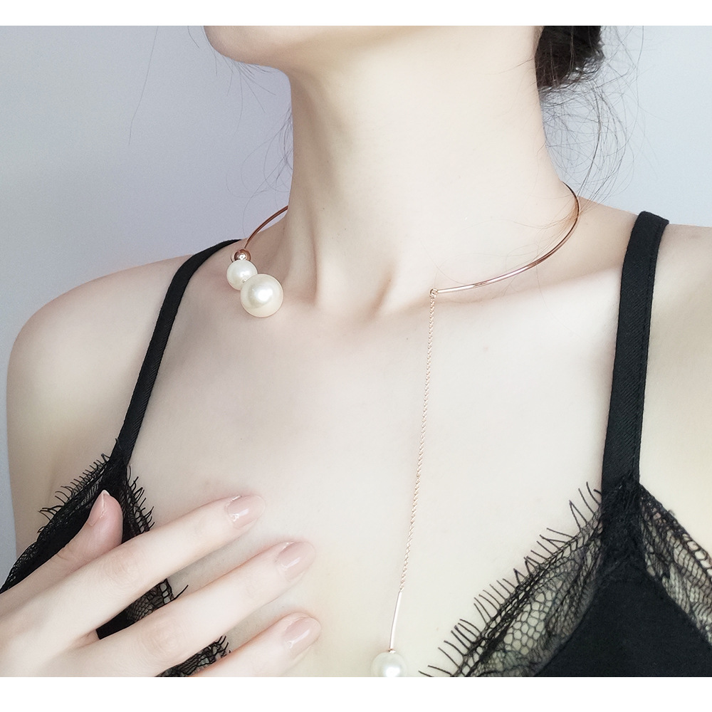 玫瑰金珍珠裝飾長款項鏈項圈頸帶女配飾品日韓版網紅韓國時尚個性