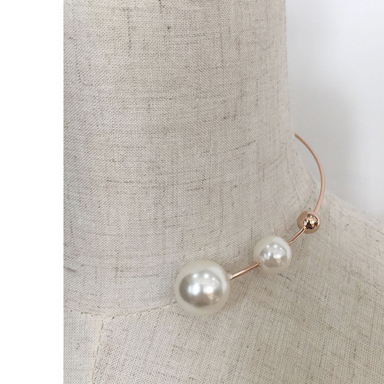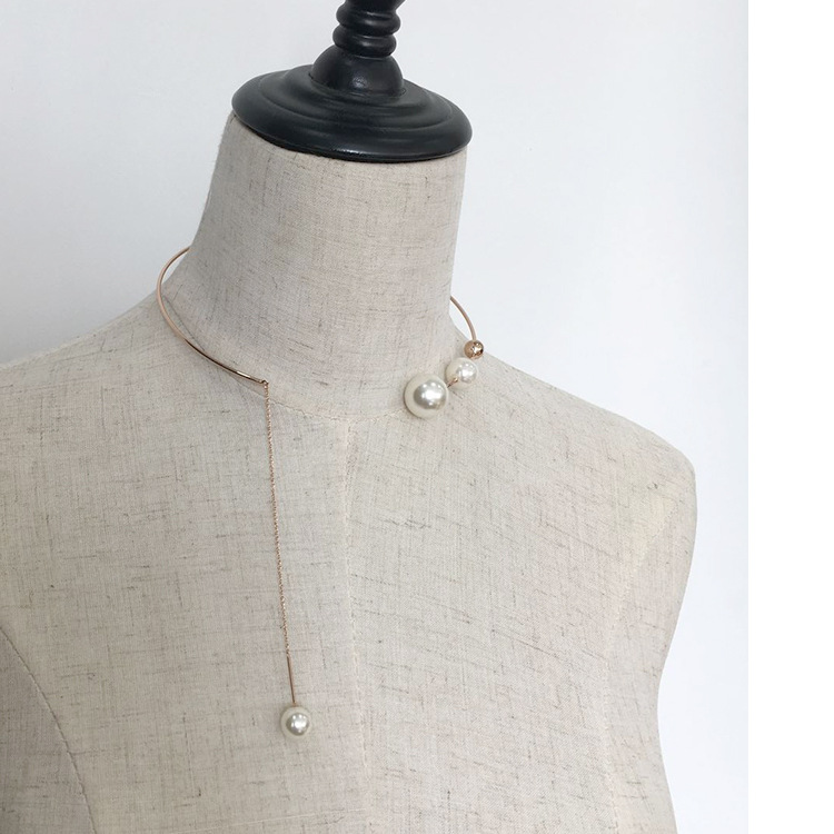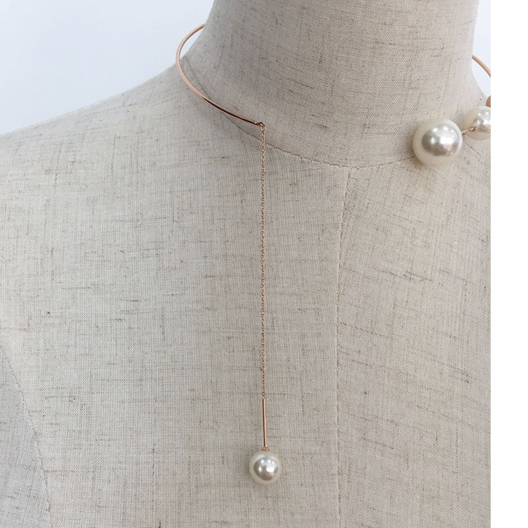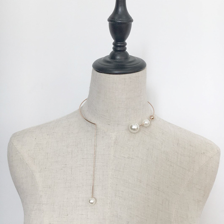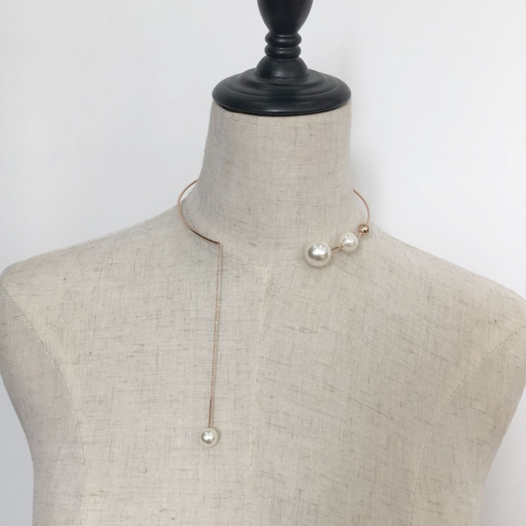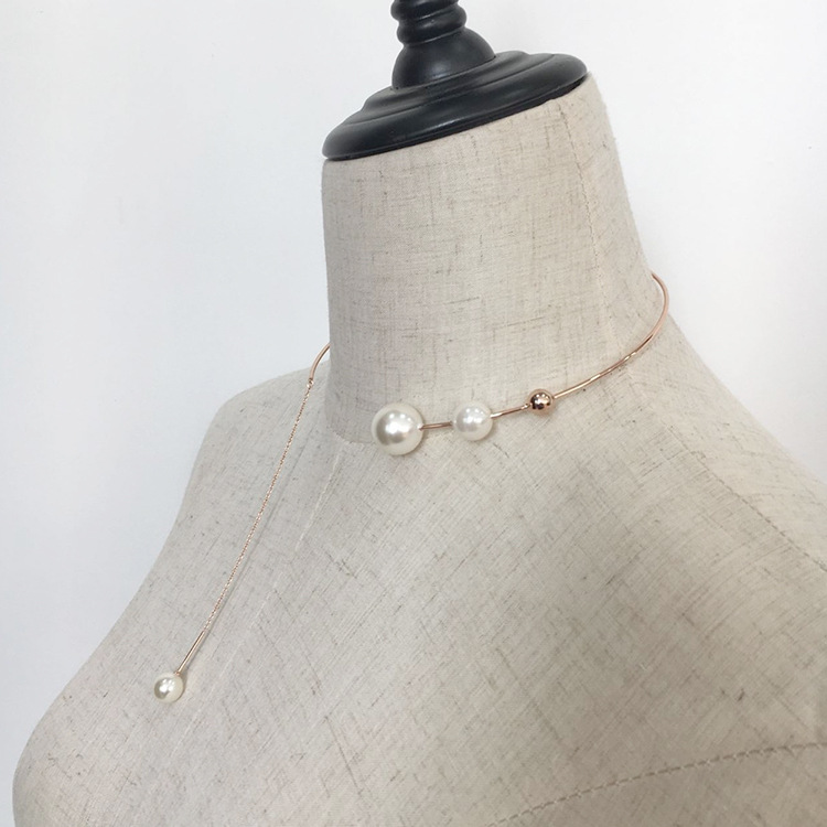 玫瑰金珍珠裝飾長款項鏈項圈頸帶女配飾品日韓版網紅韓國時尚個性