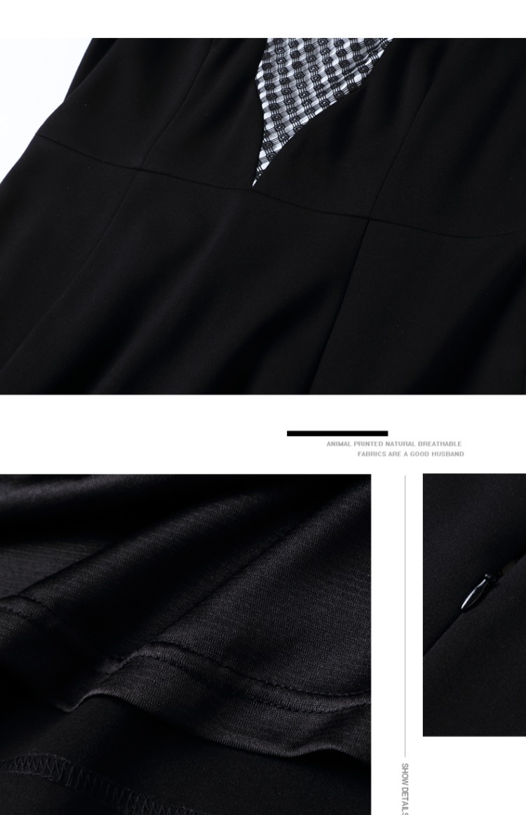 短袖黑色連衣裙女夏2023新款拼接撞色收腰氣質名媛a字裙中長款