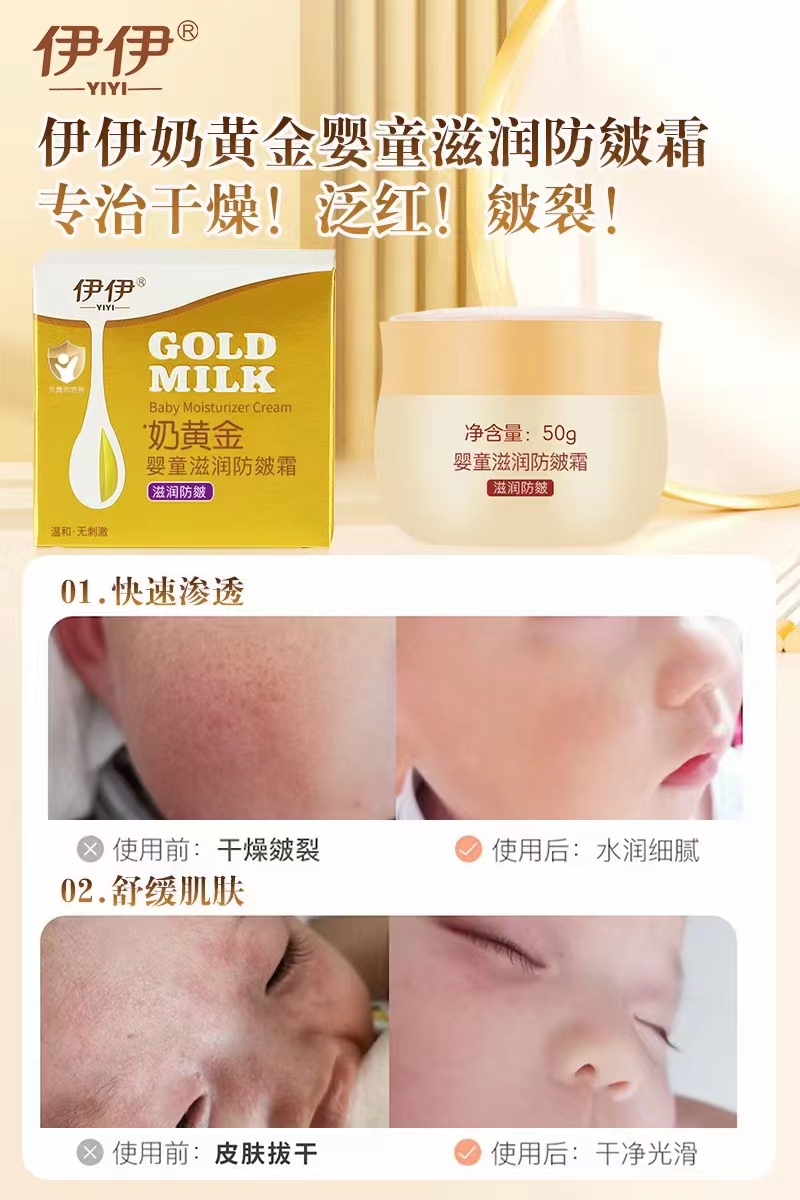 伊伊奶黃金嬰兒多效防皴霜兒童潤膚霜滋潤保濕干皴寶寶面霜搽臉油