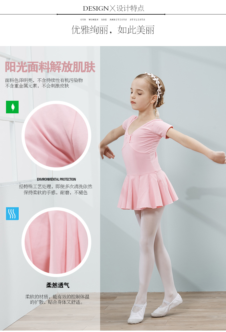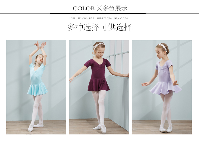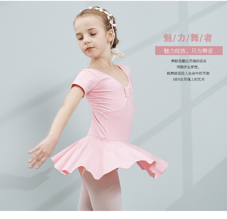 咔萌琪秋季兒童舞蹈服女童練功服短袖形體中國舞服裝女孩芭蕾舞裙