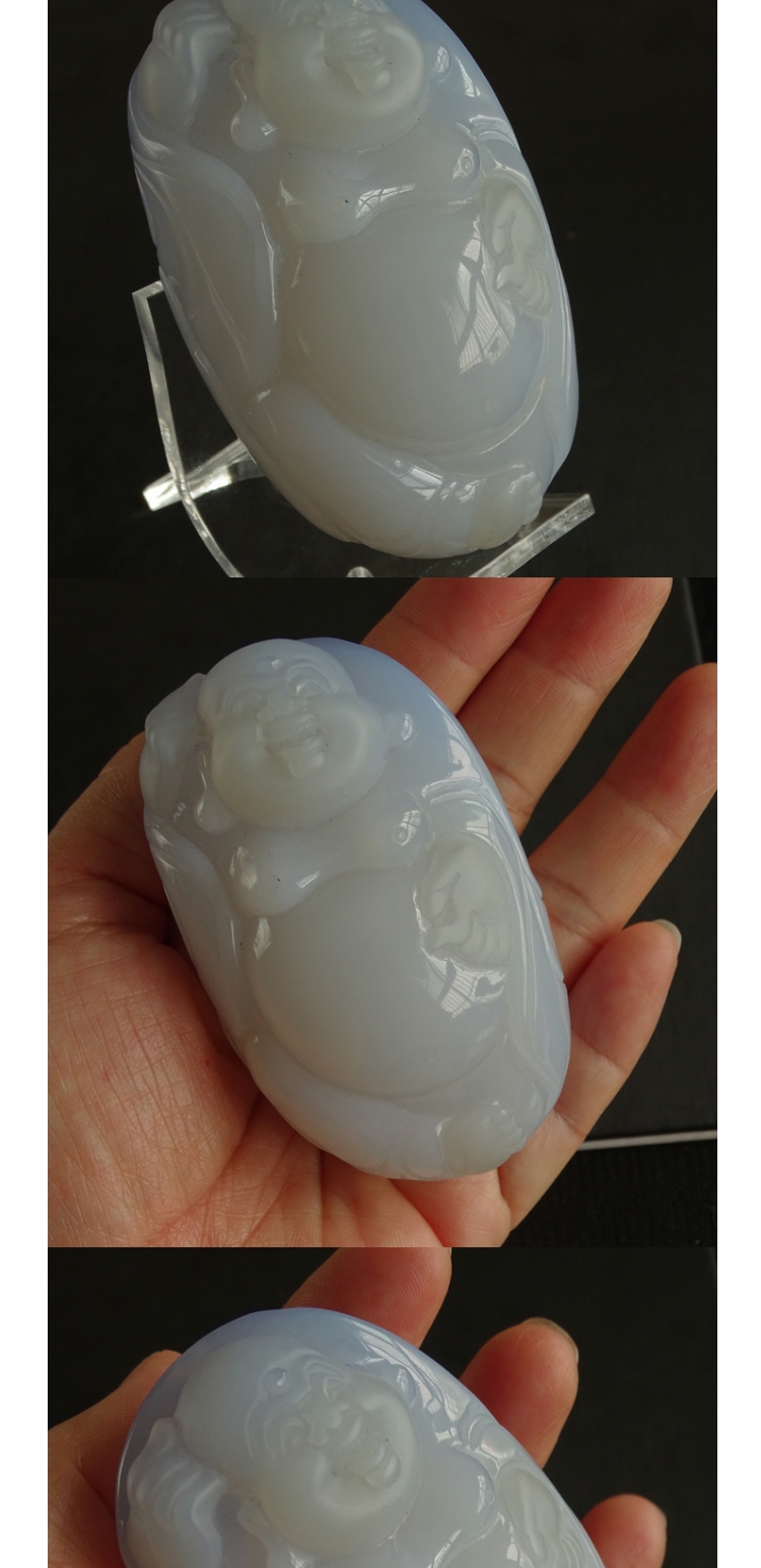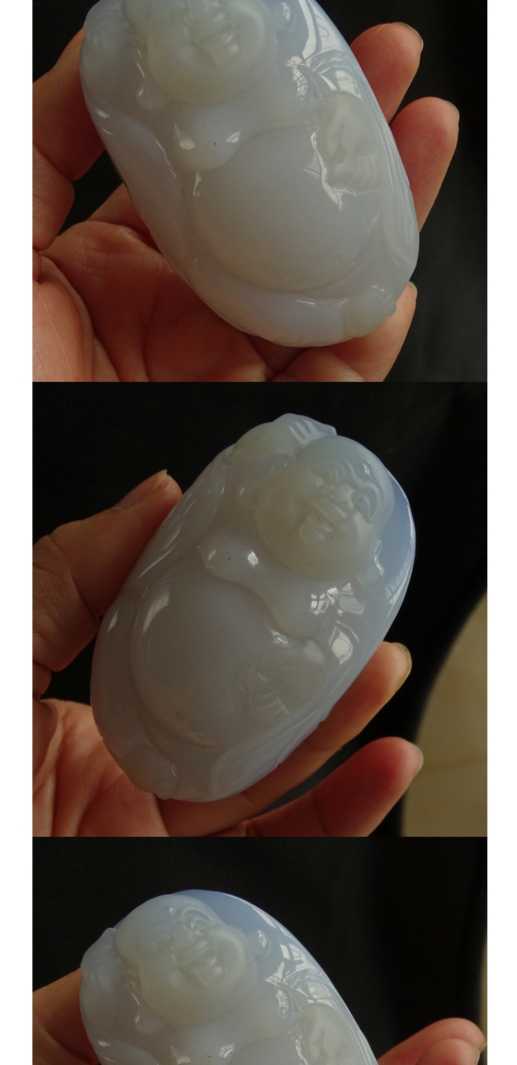 千蕊 天然藍玉髓瑪瑙雕刻佛把玩 手把件 小擺件 布衣佛彌勒佛