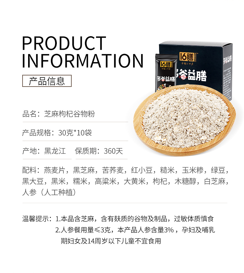十六膳芝麻枸杞谷物粉300g*2盒 代餐粉小袋裝飽腹早餐芝麻枸杞粉