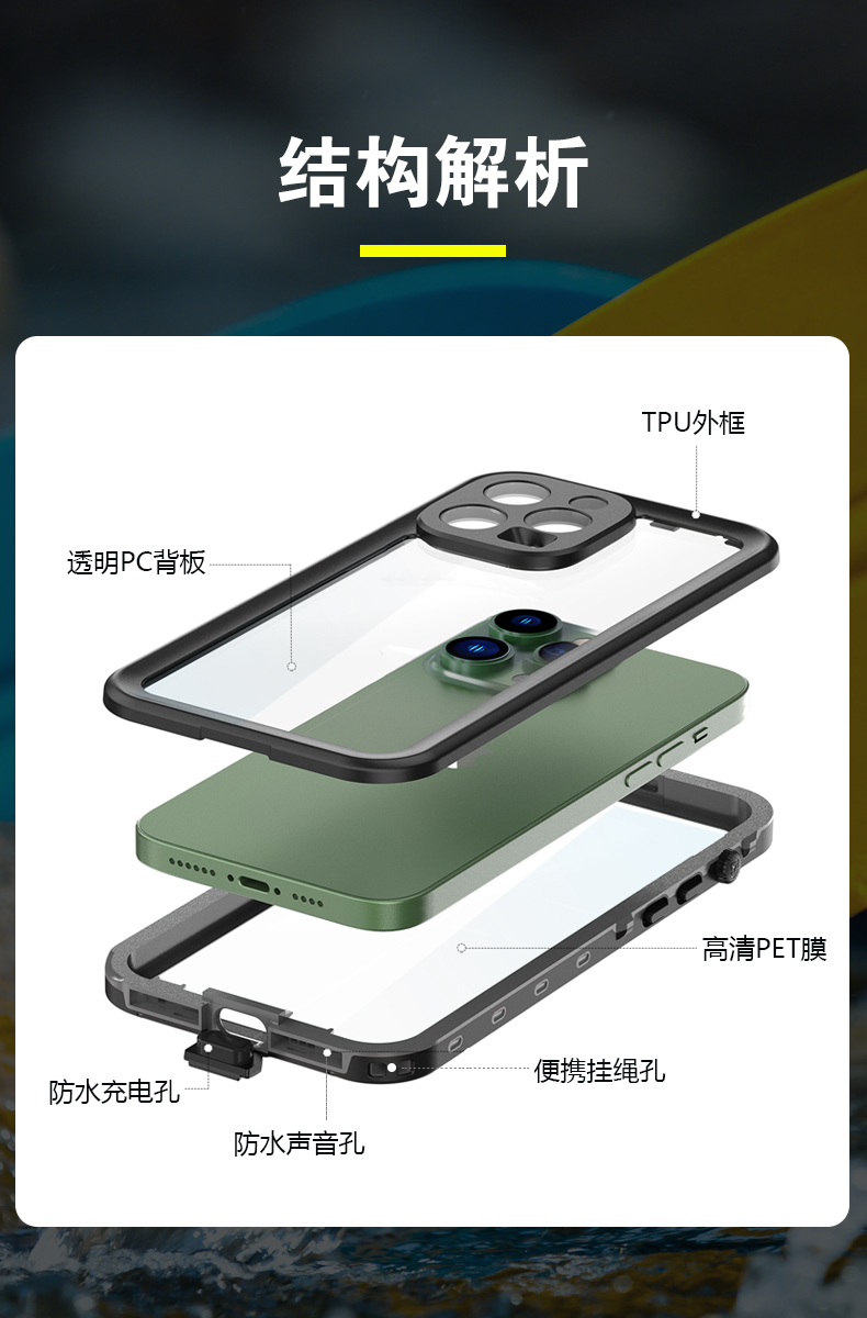 iPhone15ProMax防水手機殼適用蘋果12/13/14游泳套X全包密封海邊漂流Full Protection waterproof case cover