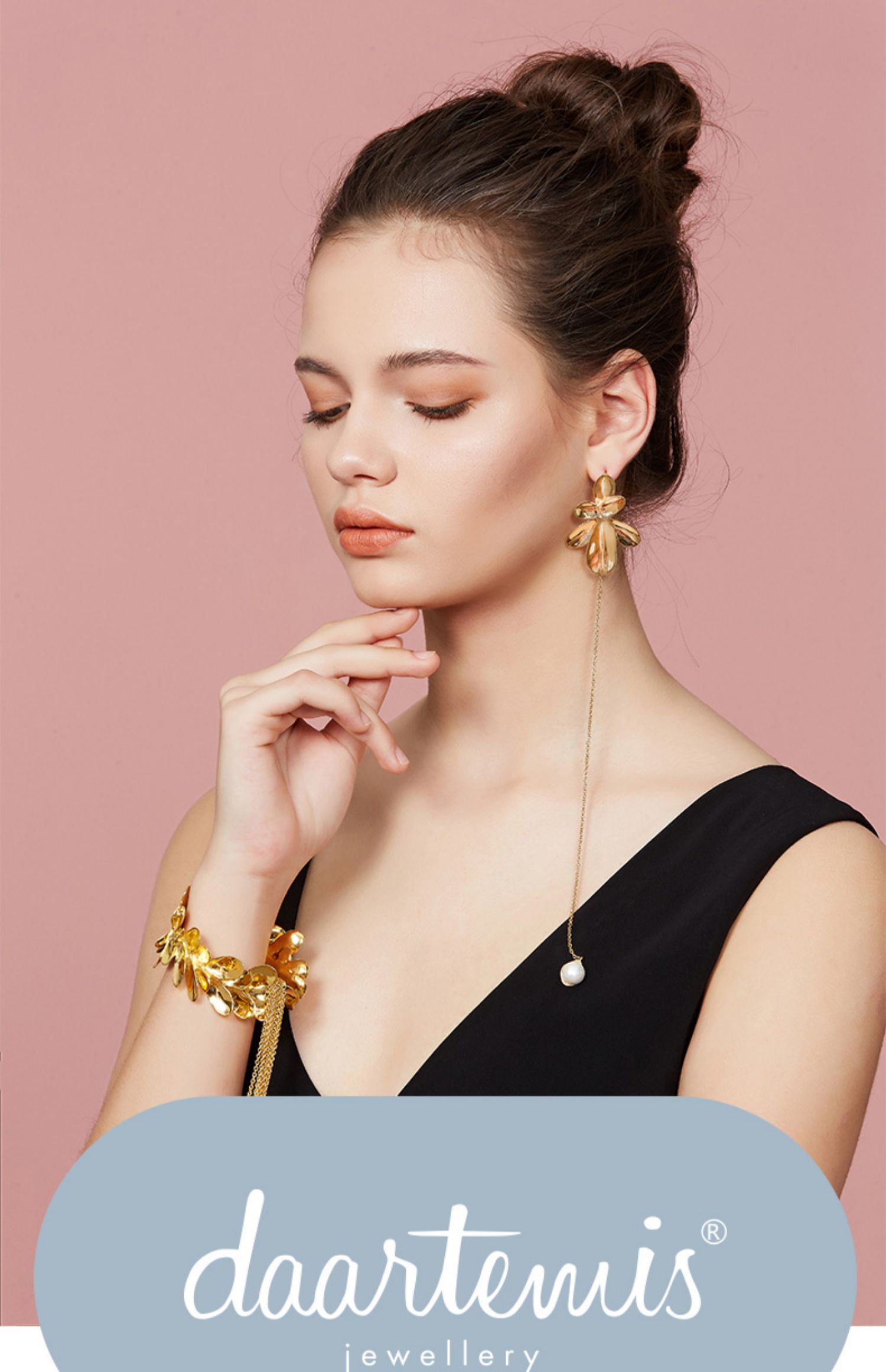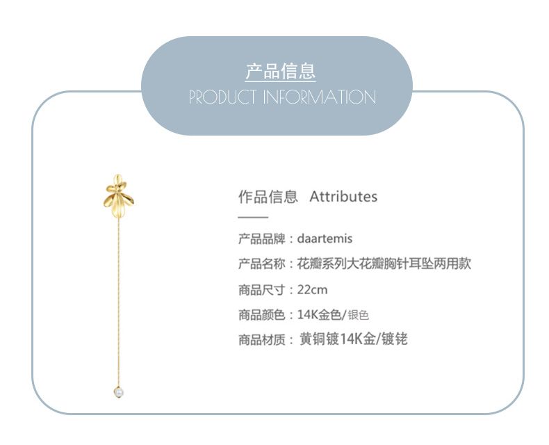 daartemis原創耳墜花瓣胸針耳墜兩用單只鏈條首飾女復古潮流網紅