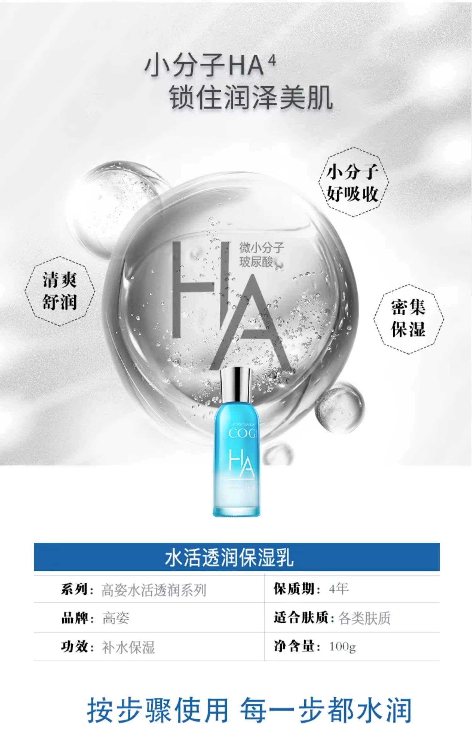 高姿玻尿酸水活透潤乳液100g補水保濕秋冬滋潤高姿旗艦店官方旗艦