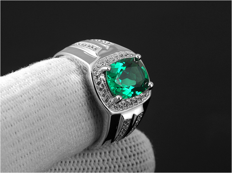 彩寶男925純銀鍍金祖母綠尖晶指環