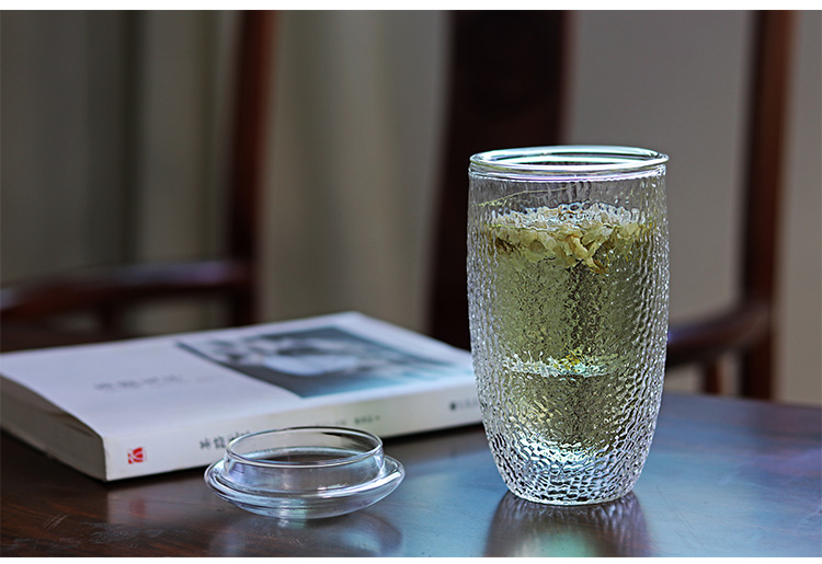 TIME日式錘紋耐熱雙層玻璃水杯辦公室過濾泡茶杯家用花茶杯綠茶杯