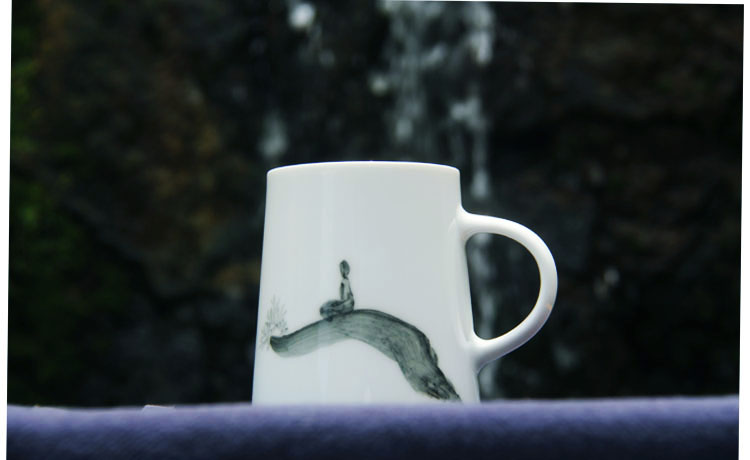 山水間仙鶴景德鎮創意個性陶瓷杯