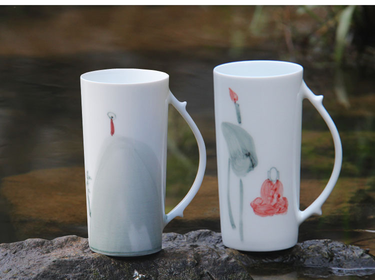 春火原創水墨荷花粉紅景德鎮馬克杯