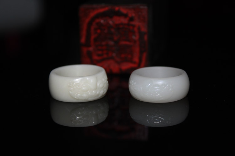 緣起藏墨綠檀木雕刻男女蓮花戒指