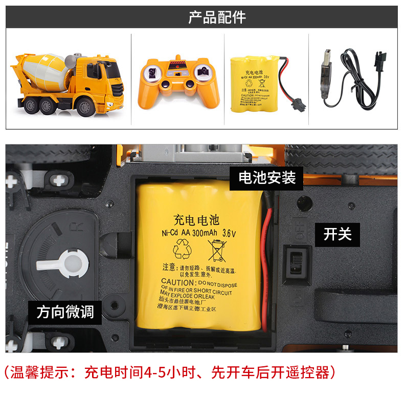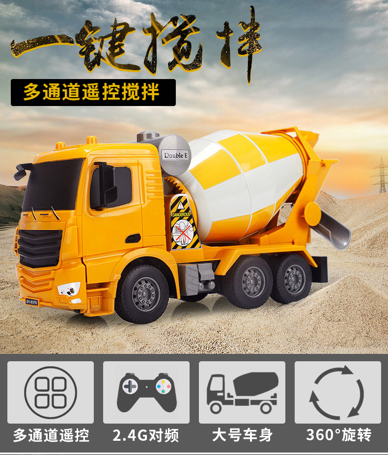 雙鷹兒童遙控水泥攪拌車玩具大號工程車混凝土罐罐車男孩套裝玩具