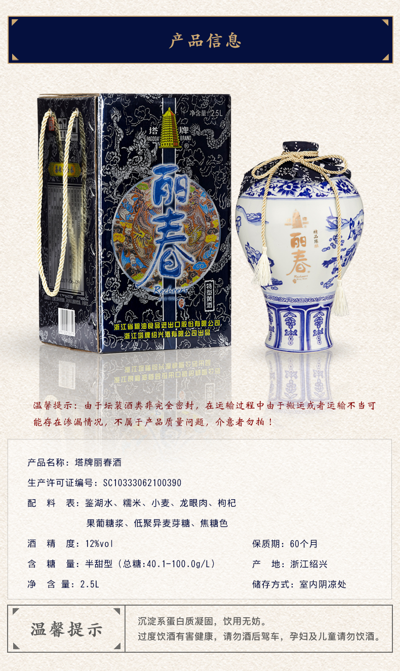 塔牌麗春2.5 l壇裝半甜型禮品酒