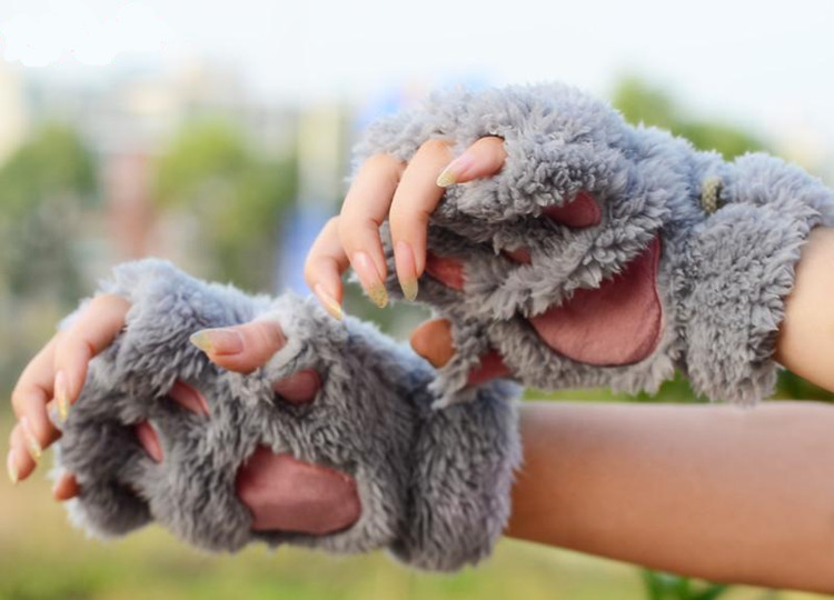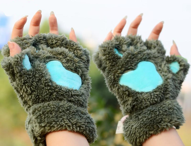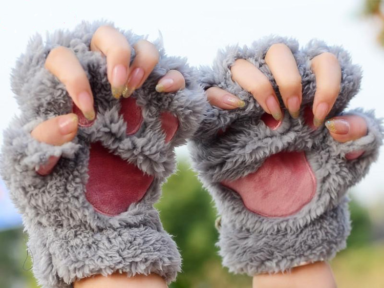 半指冬天可愛貓爪學生休閑韓國手套