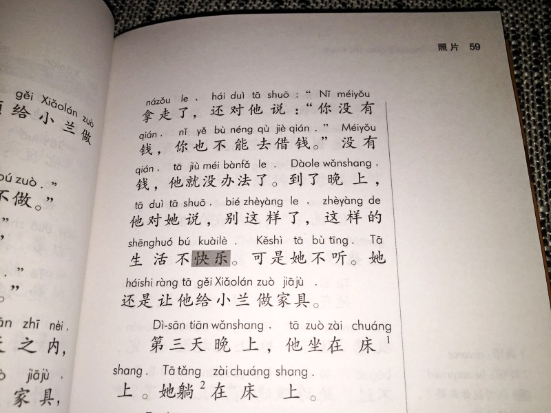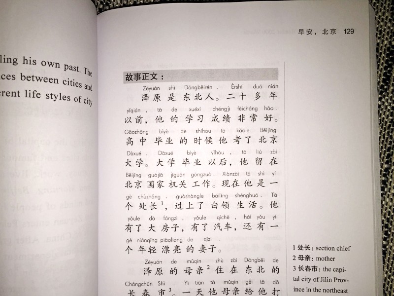 配有MP3錄音。⑦為適應學生的不同需求,《漢語分級閱讀:1000詞》配有可以隱去拼音的拼音隱形卡。⑧除此之外,每篇故事還配有插圖,以幫助學生更直觀地了解故事內容。《漢語分級閱讀》的編寫宗旨是進一步降低漢語閱讀的難度,幫助學生提高漢語閱讀和漢語聽力的水平。適合新漢語水平考試四級及同等水平學習者使用。