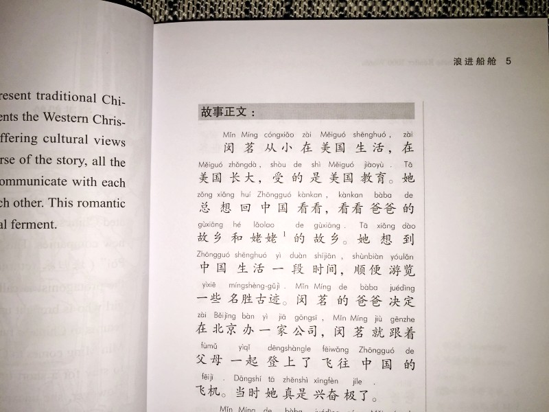 在編寫過程中進行了精心設計:①對每篇故事中超出上述詞匯以外的詞、難詞、專有名詞、俗語及難句都進行了旁注,一些常用詞給出了例句。②盡量增加常用詞的復現率,以此增強讀者對漢語常用詞的理解與記憶。③句子力求簡短,結構完整,盡量避免結構復雜的長句。④故事正文均配上拼音,使學生盡可能地通過讀音記憶詞義和查閱詞典。⑤為方便讀者能夠按自己的興趣任意挑選某篇故事去閱讀,注釋都是以單篇故事為單位重復出現的。⑥為提高學生的聽力水平,⑦為適應學生的不同需求,配有可以隱去拼音的拼音隱形卡。⑧除此之外,每篇故事還配有插圖,以幫助學生更直觀地了解故事內容。《漢語分級閱讀·2500詞》的編寫宗旨是進一步降低漢語閱讀的難度,幫助學生提高漢語閱讀和漢語聽力的水平。適合新漢語水平考試五級及同等水平學習者使用。