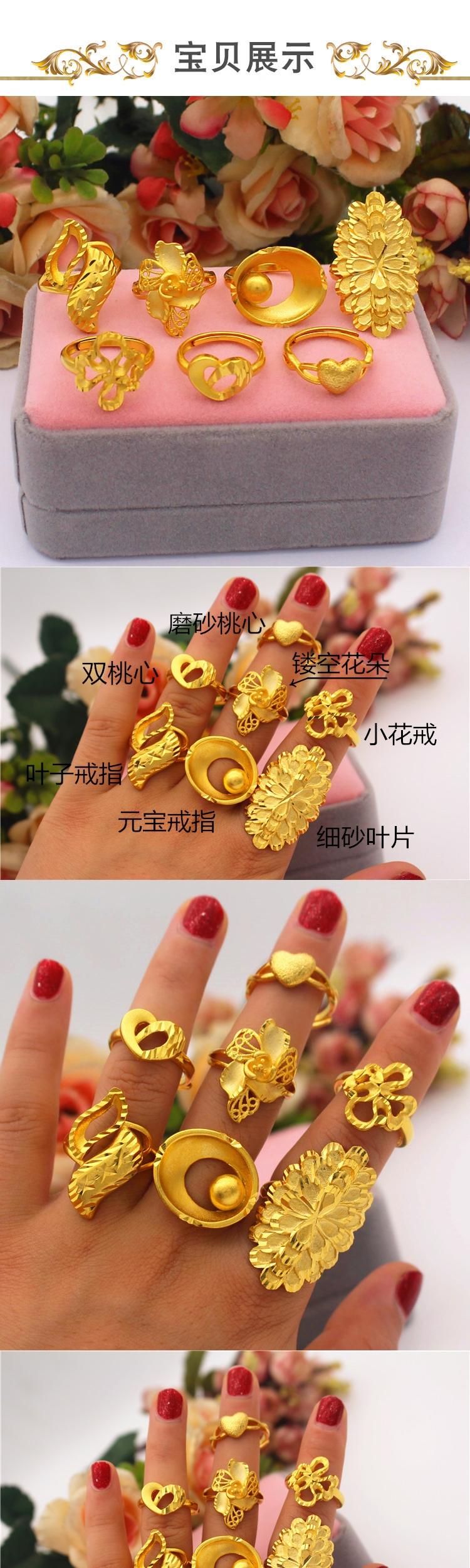 越南沙金2020新款仿真黃金久不掉色飾品愛心鏤空花朵首飾戒指女