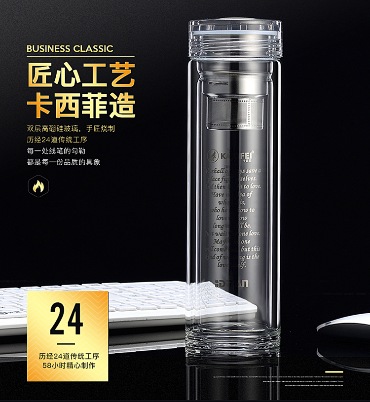 卡西菲雙層玻璃杯男士高檔水杯透明加厚隔熱過濾創意便攜泡茶杯子