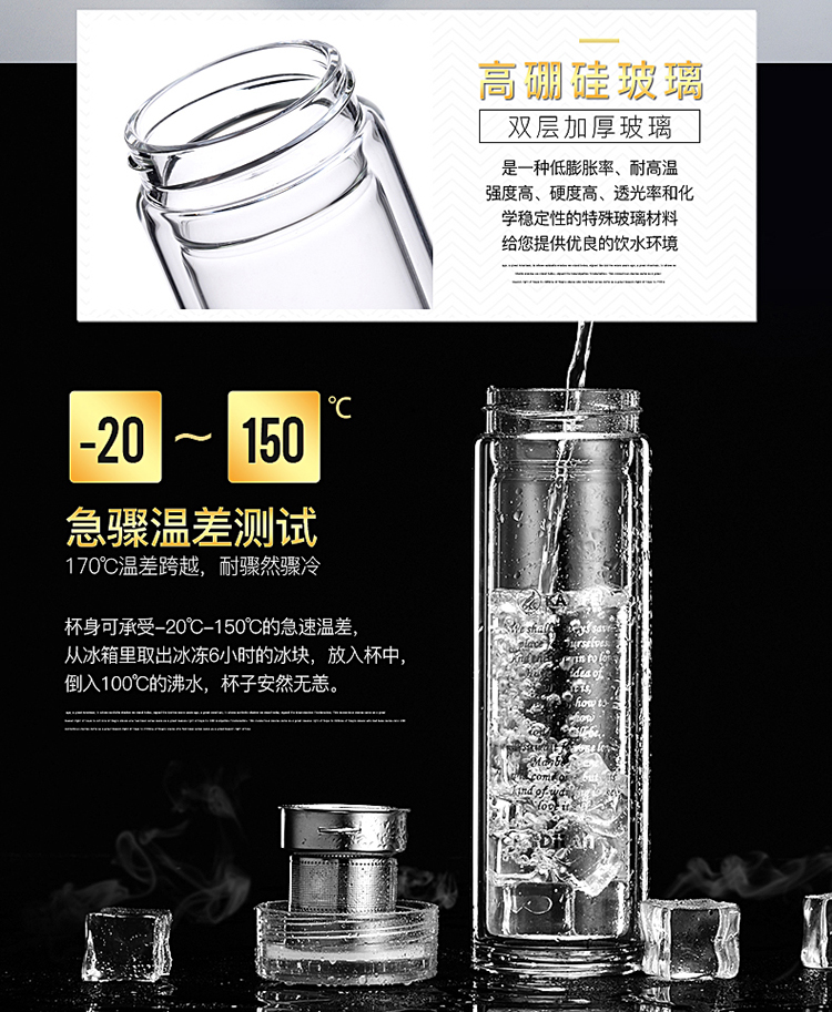 雙層時尚水晶防摔便攜過濾隨手杯子
