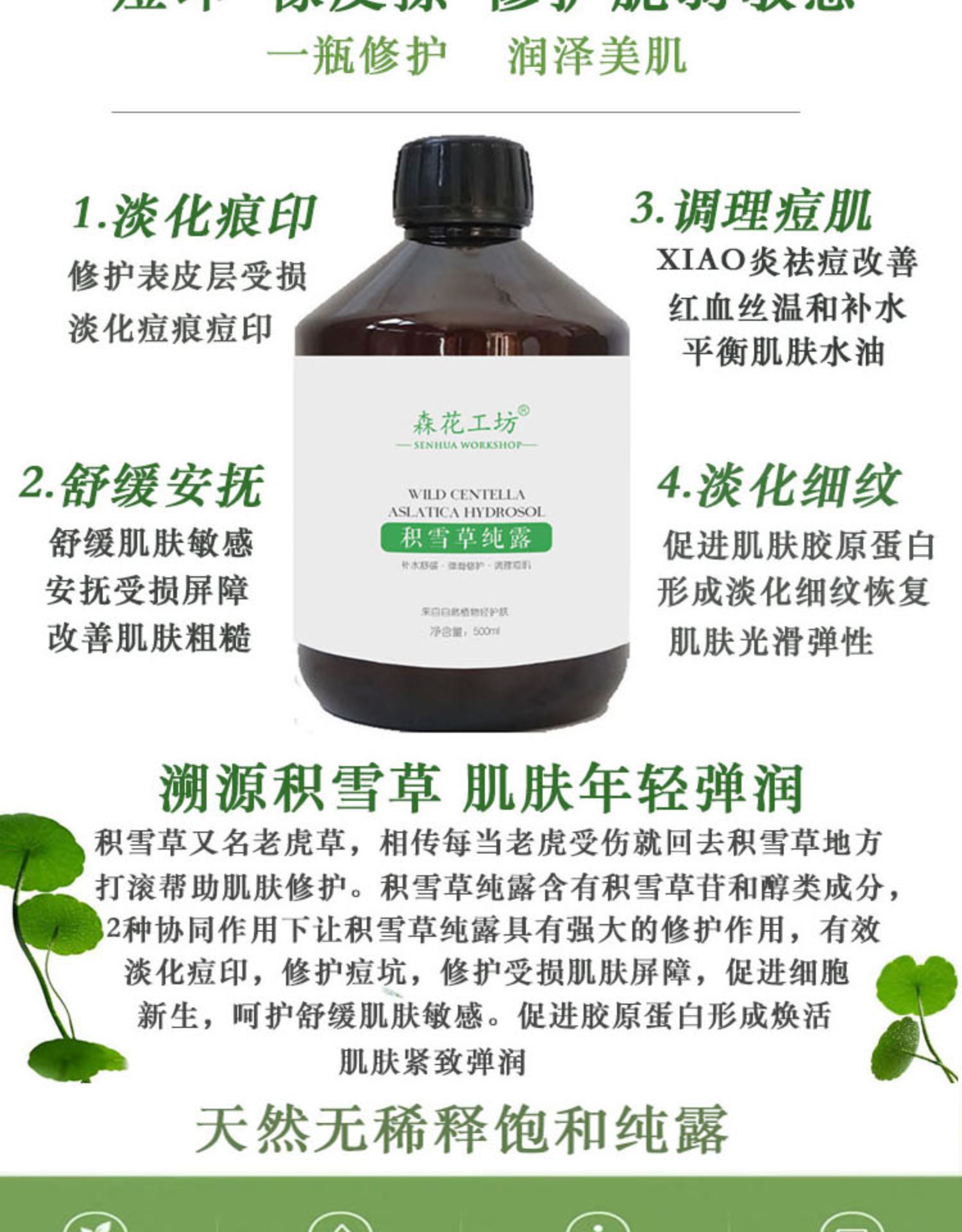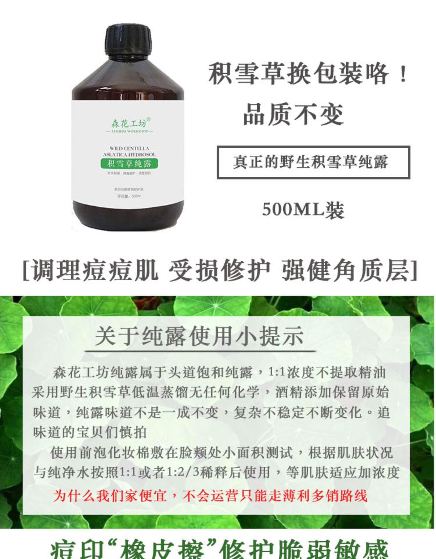 【森花工坊】野生新鮮積雪草純露修護敏感皮脂膜痘印曬后修復緊致