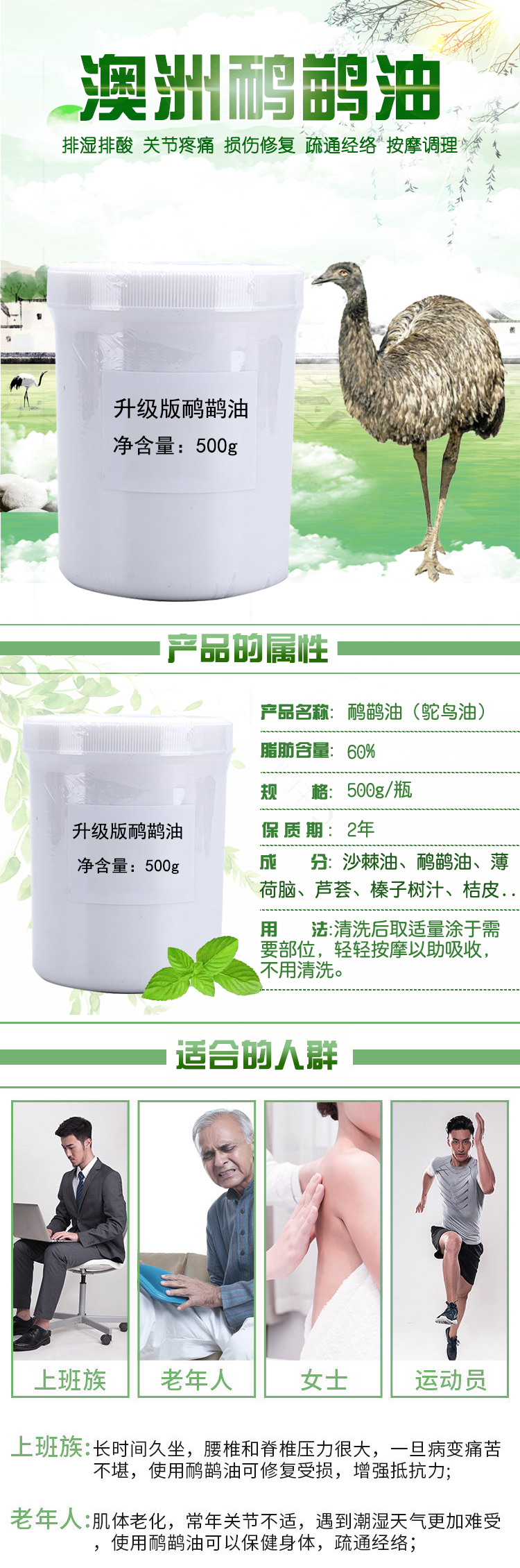 鴯鹋油升級版鴕鳥油澳洲正品原裝排濕排酸純特護霜祛斑通經絡500g