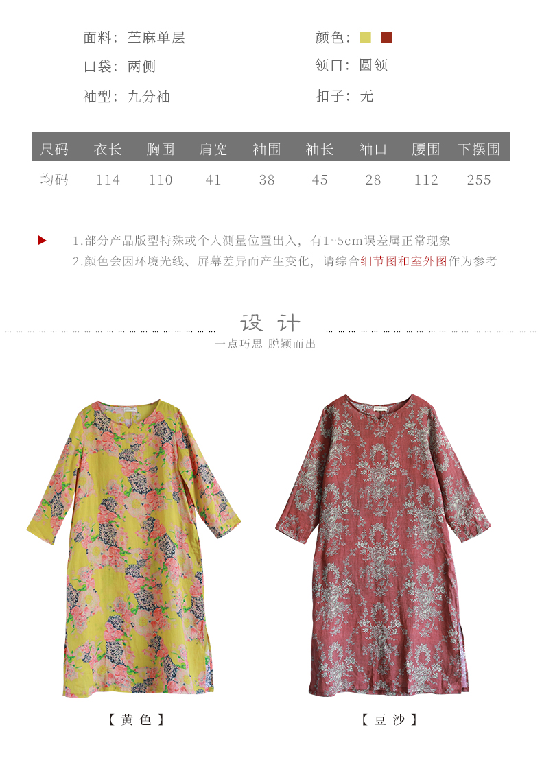 亂在江南復古文藝苧麻中長款連衣裙女夏季新品民族風寬松印花長裙