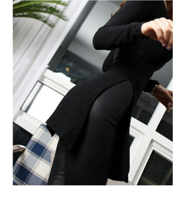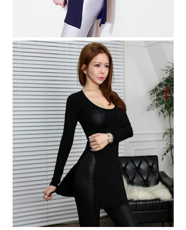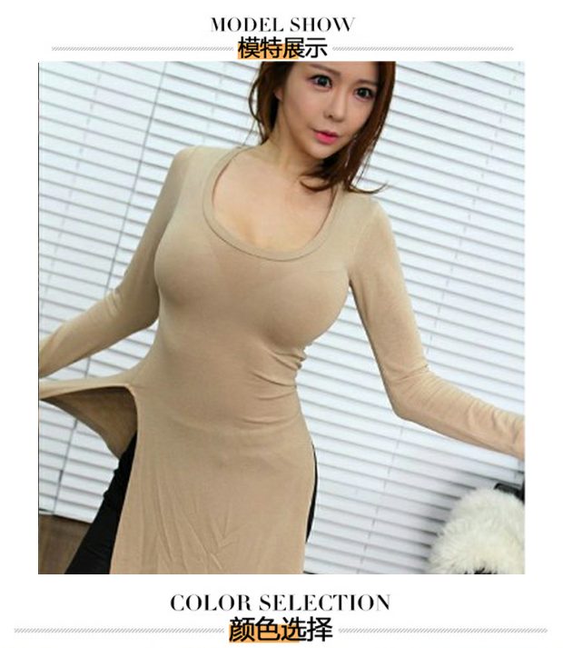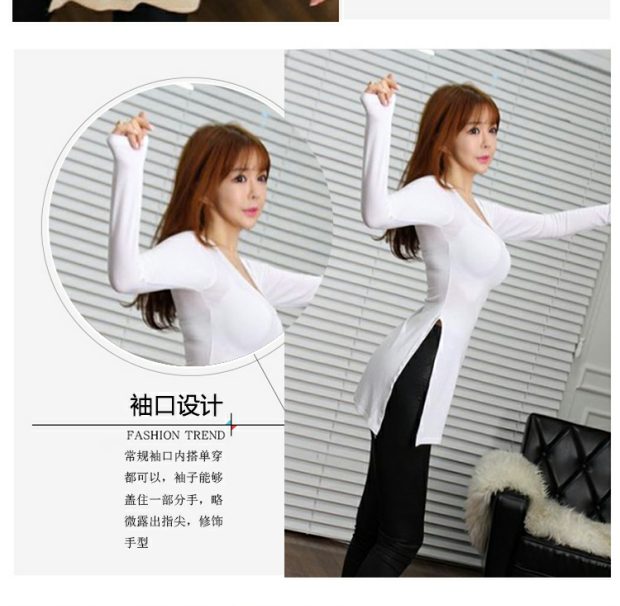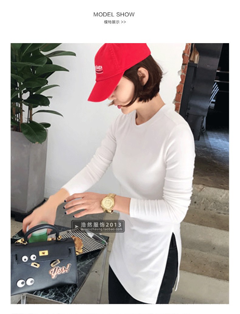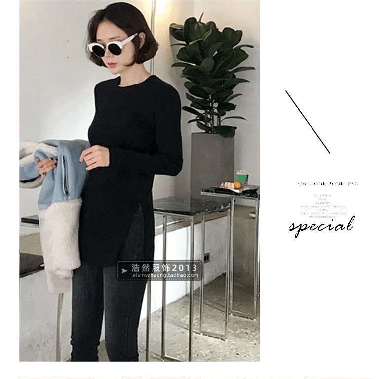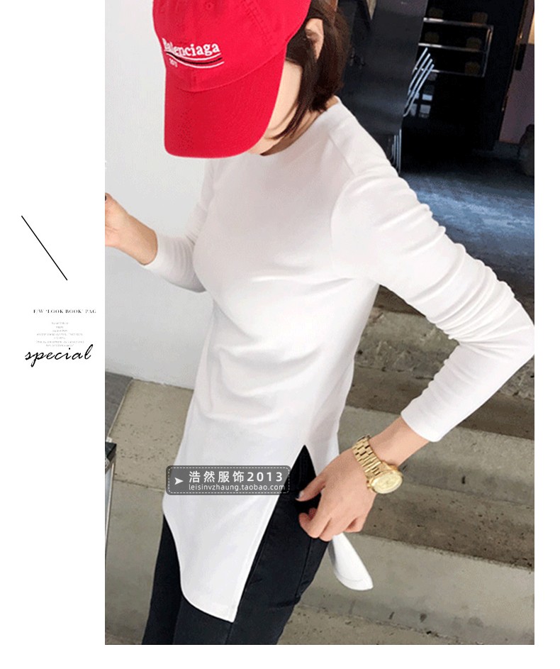 中長款長袖春秋遮屁股開叉歐貨t恤