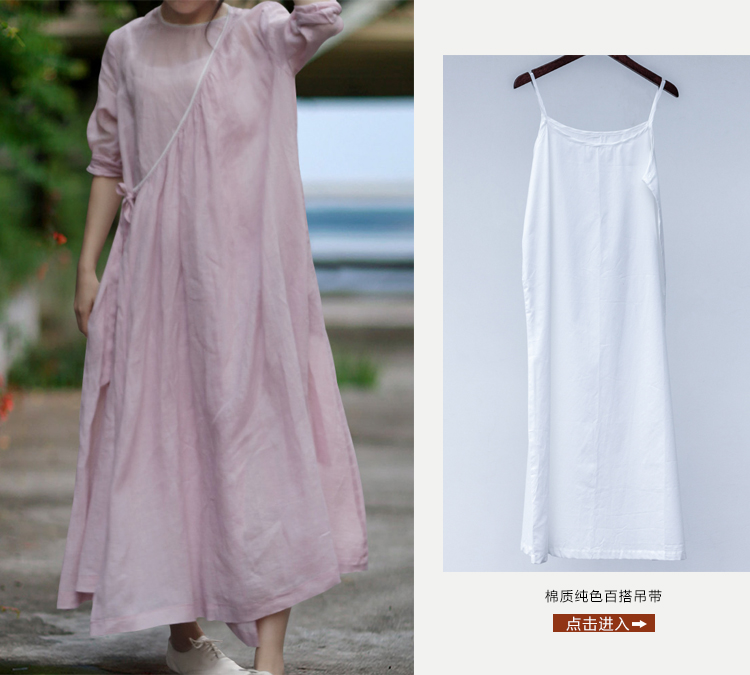 蝦粉色苧麻寬松復古連衣裙 2022夏減齡袍子女