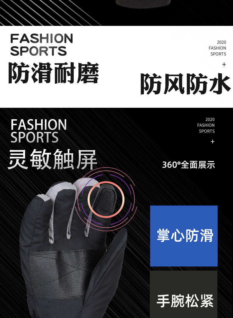 冬季男女滑雪防滑三層加絨棉冬觸屏