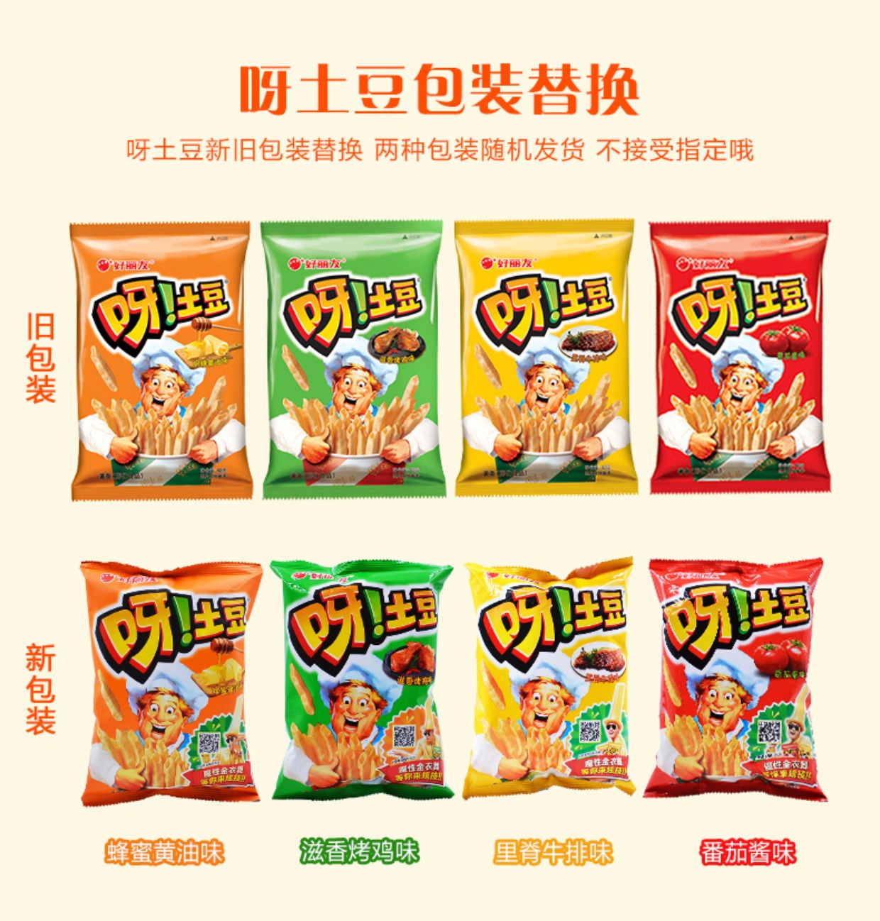 好麗友呀土豆40g*12袋番茄味蜂蜜黃油薯條大包超大包整箱薯片零食