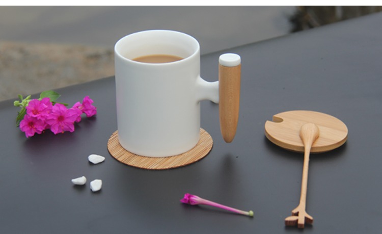 春火木把手馬克杯帶蓋勺簡約文藝水杯陶瓷辦公室北歐情侶咖啡杯子