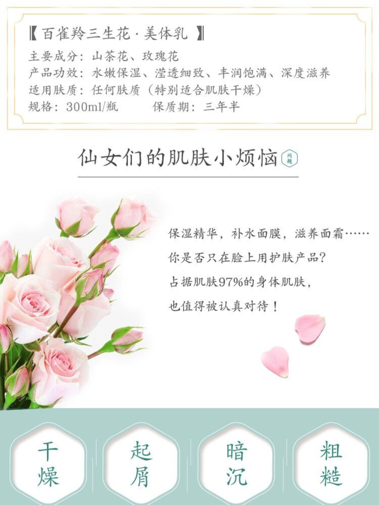 百雀羚三生花身體乳女滋潤補水保濕留香全身潤膚露秋冬旗艦店正品