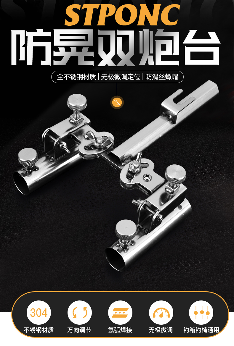 釣箱釣魚雙炮臺魚支架雙桿不銹鋼萬向雙頭釣椅雙炮臺架座釣魚裝備