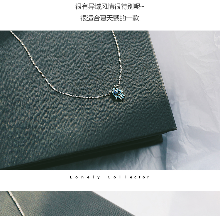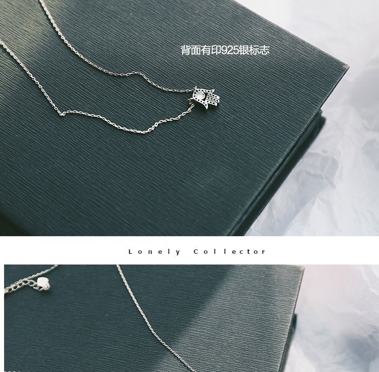 【以色列淘】法蒂瑪手掌925銀項鏈鎖骨鏈惡魔之眼項鏈女
