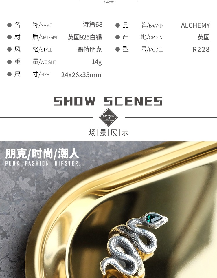 Alchemy Gothic R228 A牌毒蛇蠎蛇潮流哥特個性簡約潮人日韓戒指