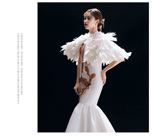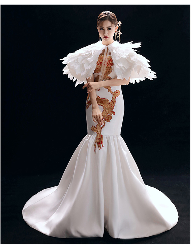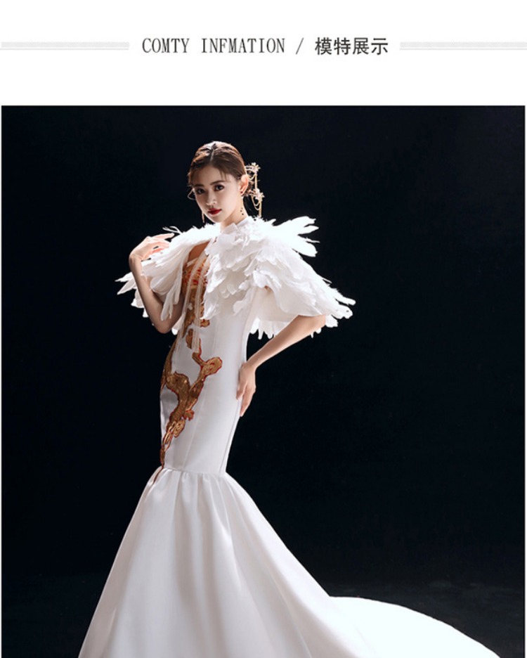 2023新款中國風主持人禮服端莊大氣成人模特走秀拖尾演出晚禮服女