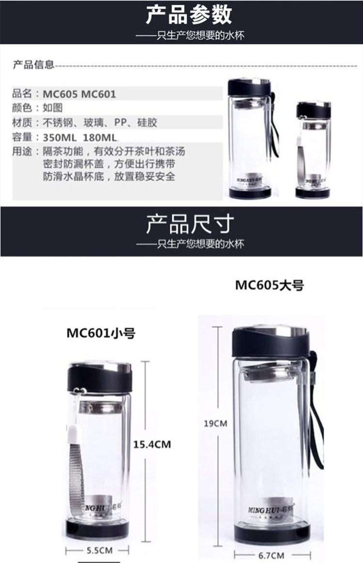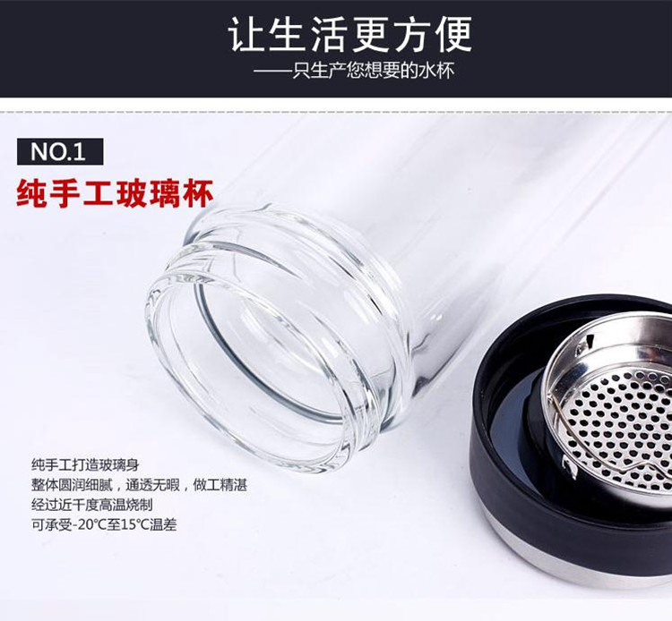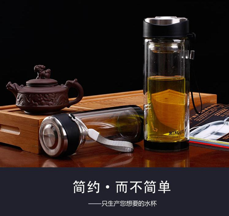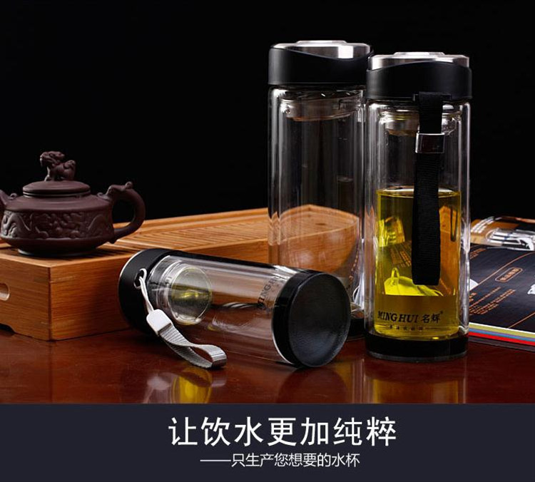 名輝雙層便攜帶過濾加厚底玻璃杯
