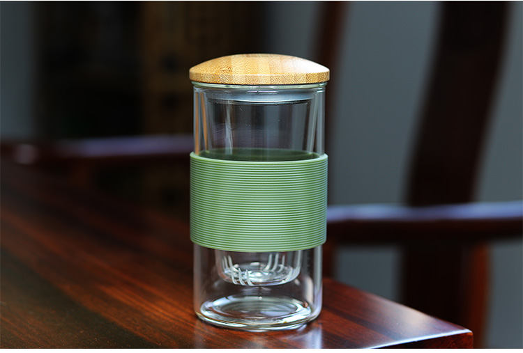 time當鋪 耐熱玻璃橡膠隔熱辦公室泡茶杯過濾帶蓋家用花茶杯