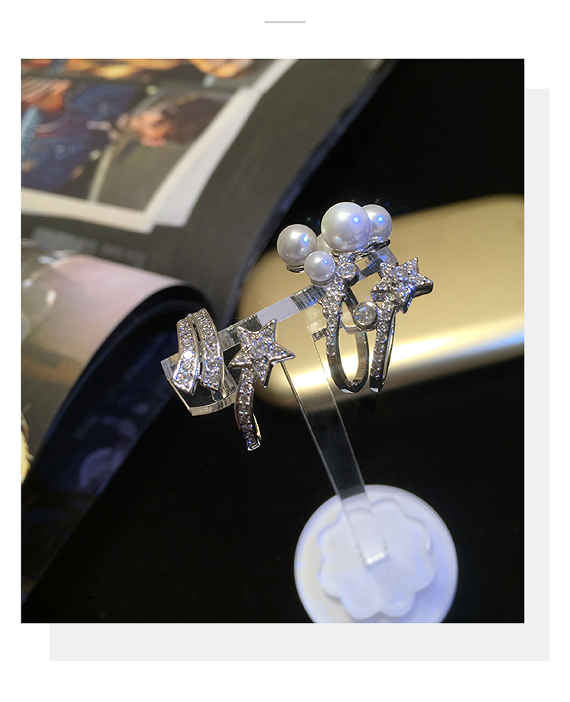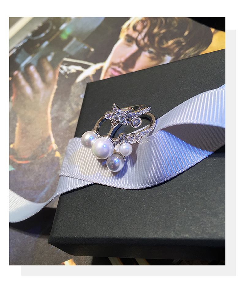 歐美簡約五角星珍珠戒指 日韓版開口可調節食指尾戒吉克雋逸同款