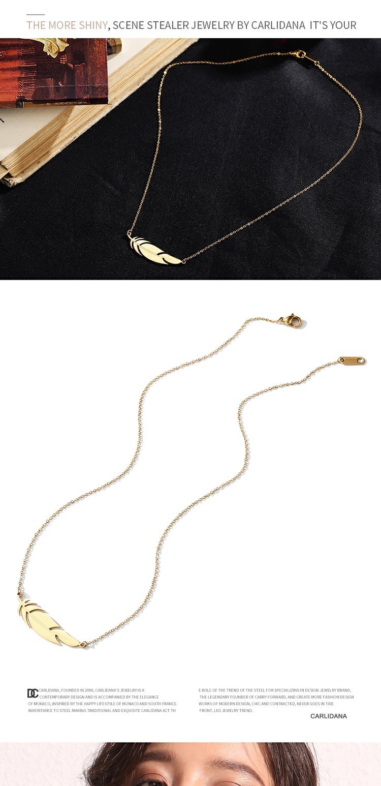 ins歐美復古羽毛項鏈鈦鋼鍍18K金極簡百搭簡約時尚冷淡風項鏈吊墜