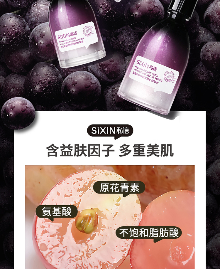 私信葡萄籽套盒抗氧護膚品水乳套裝女補水保濕官方旗艦店官網正品