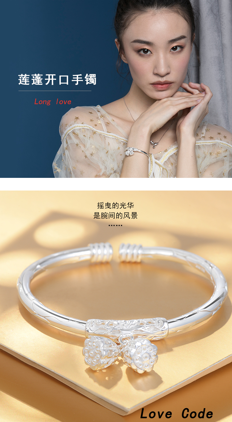 【雙十一送老婆】繁花銀手鐲女s999純銀足銀實心鐲子女友媽媽禮物